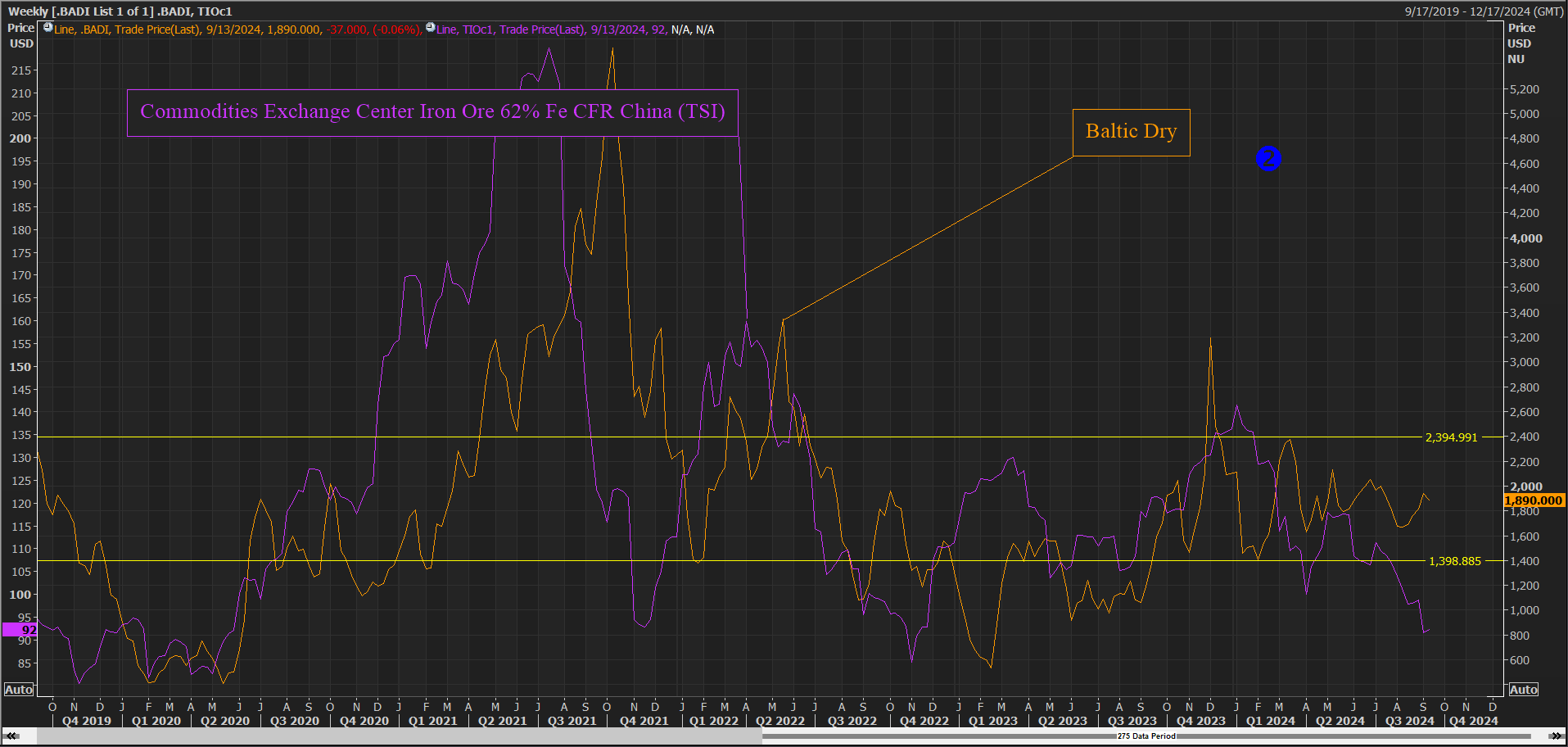 Baltic Dry Index: The Baltic Dry Index has shown sideways movement throughout the year, fluctuating within a 1,000-point range (see picture 2).